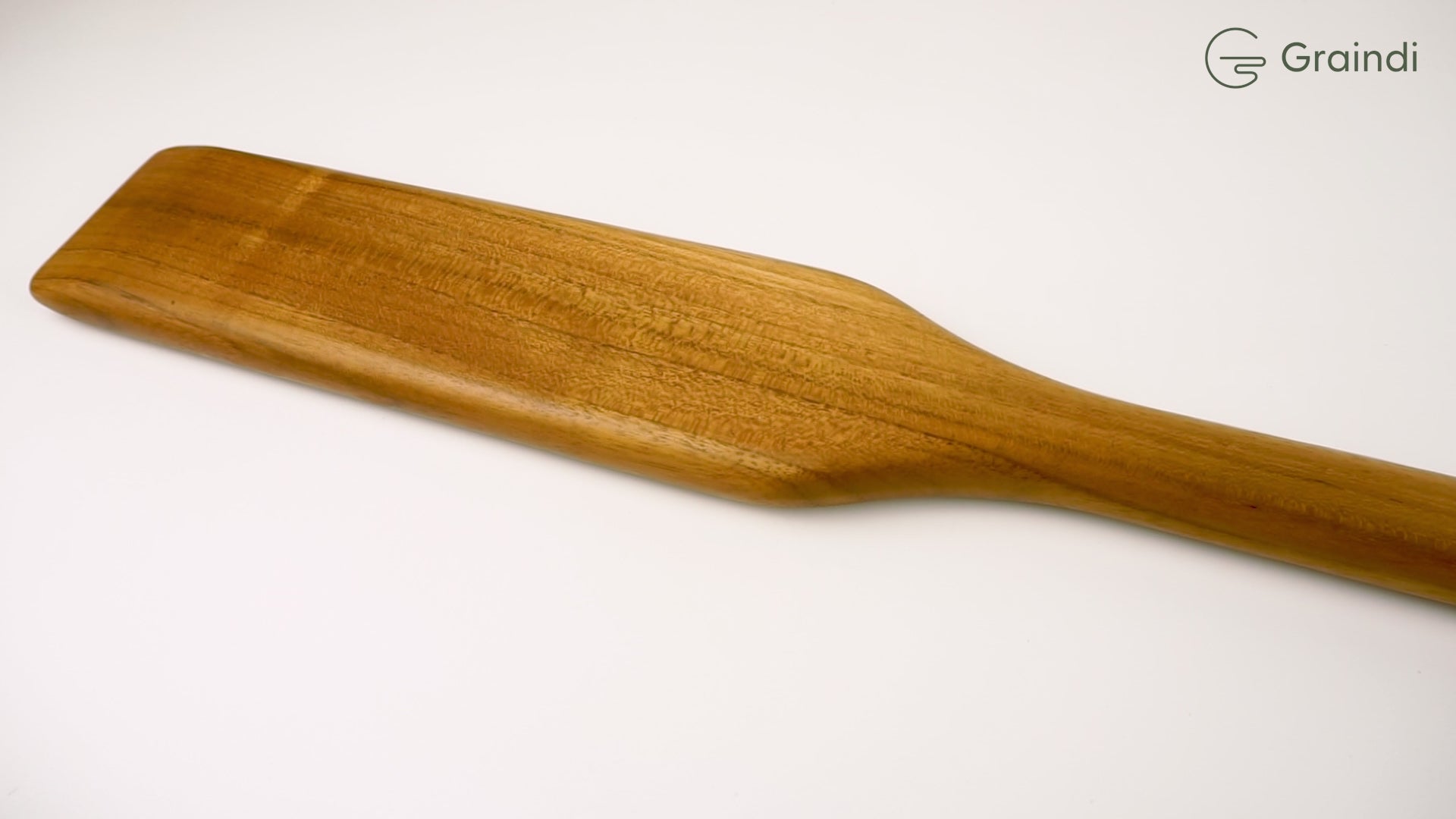 The paddles are also seasoned with food-grade mineral oil and finished with beeswax, to keep it's shine and durability. We don't use any other finishing or chemical coatings.